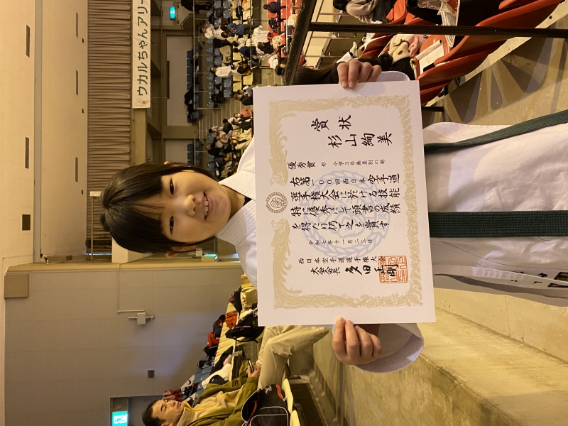 絢美が形でベスト8に入賞した。川邊先生が審判として参加した。