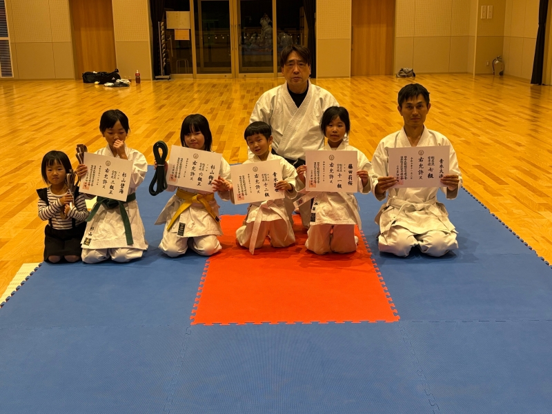 初めて受審した3名、茶帯、緑帯に昇格した道場生